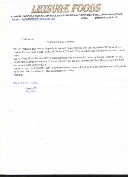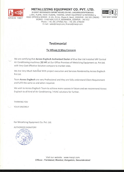 "Across Engitech" specializes in the design, installation, after-sales, and service of commercial and industrial central air conditioning, ventilation, air - cooling, fire - fighting, and refrigeration systems across the entire HVAC & R product line for all kind of industries. We work with all available companies and products of HVAC industries to provide the most up-to-date airconditioning technology available anywhere in the world. We also work with a leading company to integrate the entire cold room and cold storage system in order to provide refrigeration solutions. We provide a full range of HVAC services, including design, system engineering, supply, testing, installation, and commissioning. The company brings it with a guarantee of quality, reliability, and enduring commitment. The most important thing for the industry is the assurance of good service by manufacturing best and reliable HVAC products on our own brand also we make sure to provide you the continuous after-sales services which are backed by a team of highly qualified engineers, skilled people, and technicians.